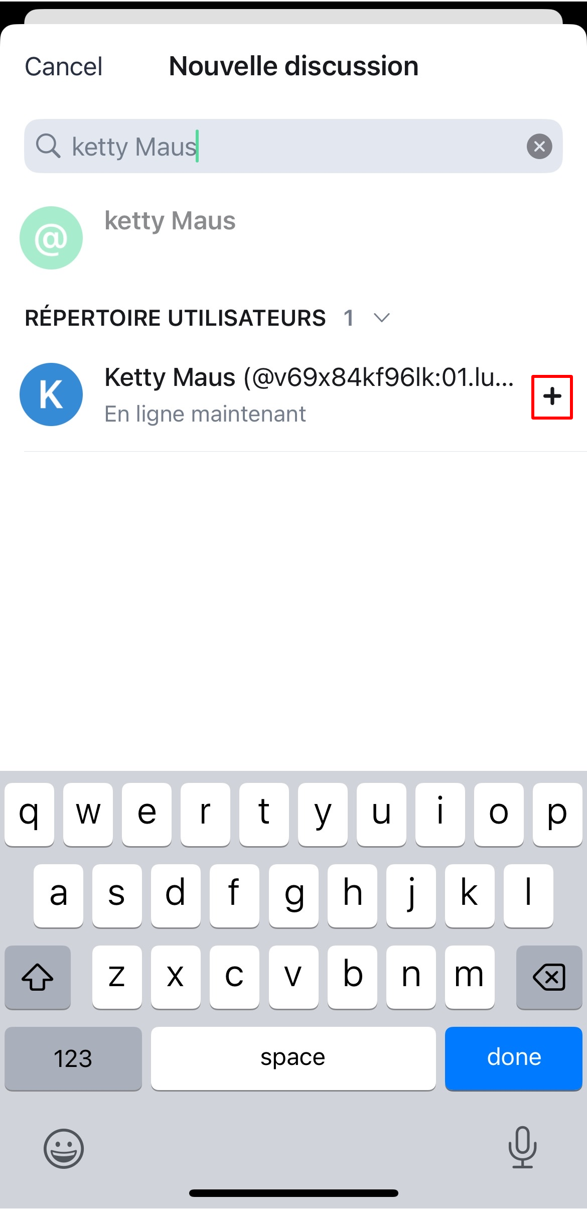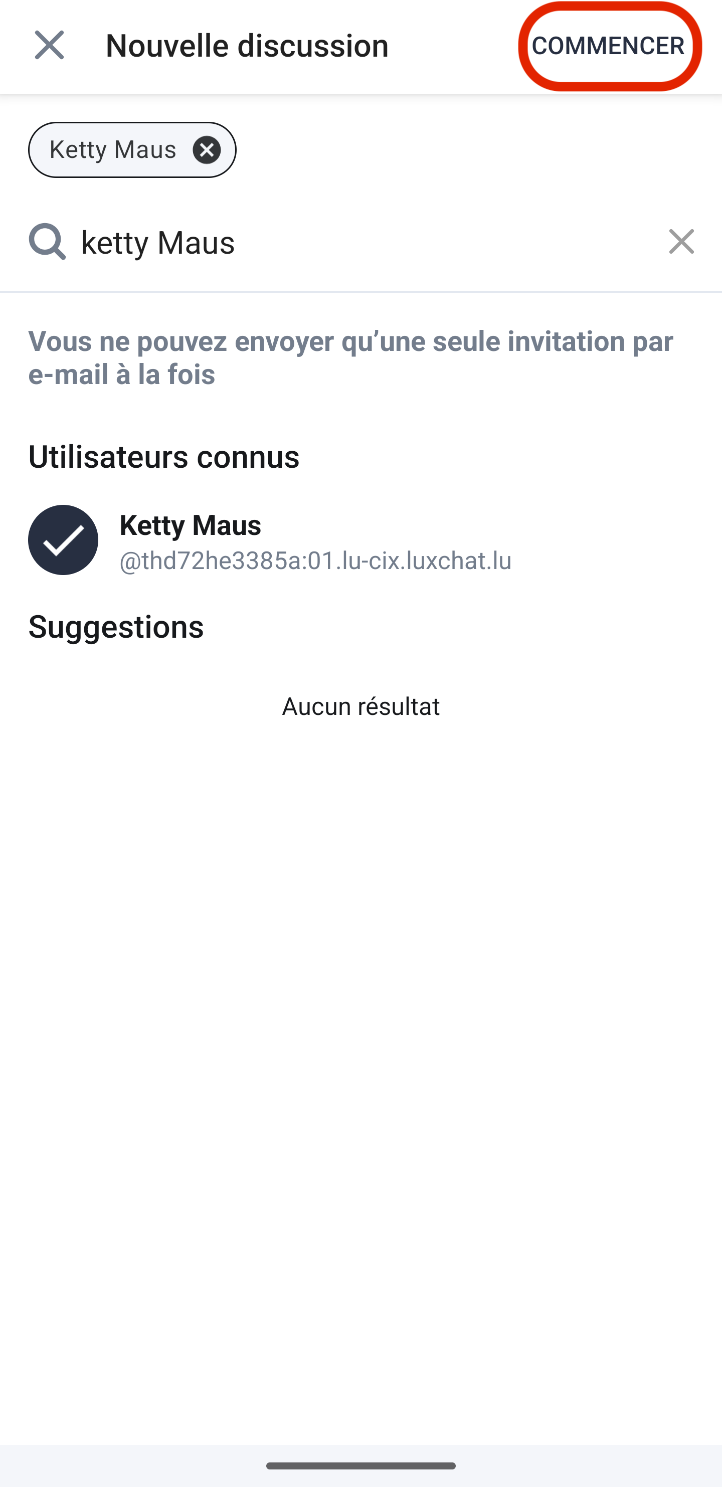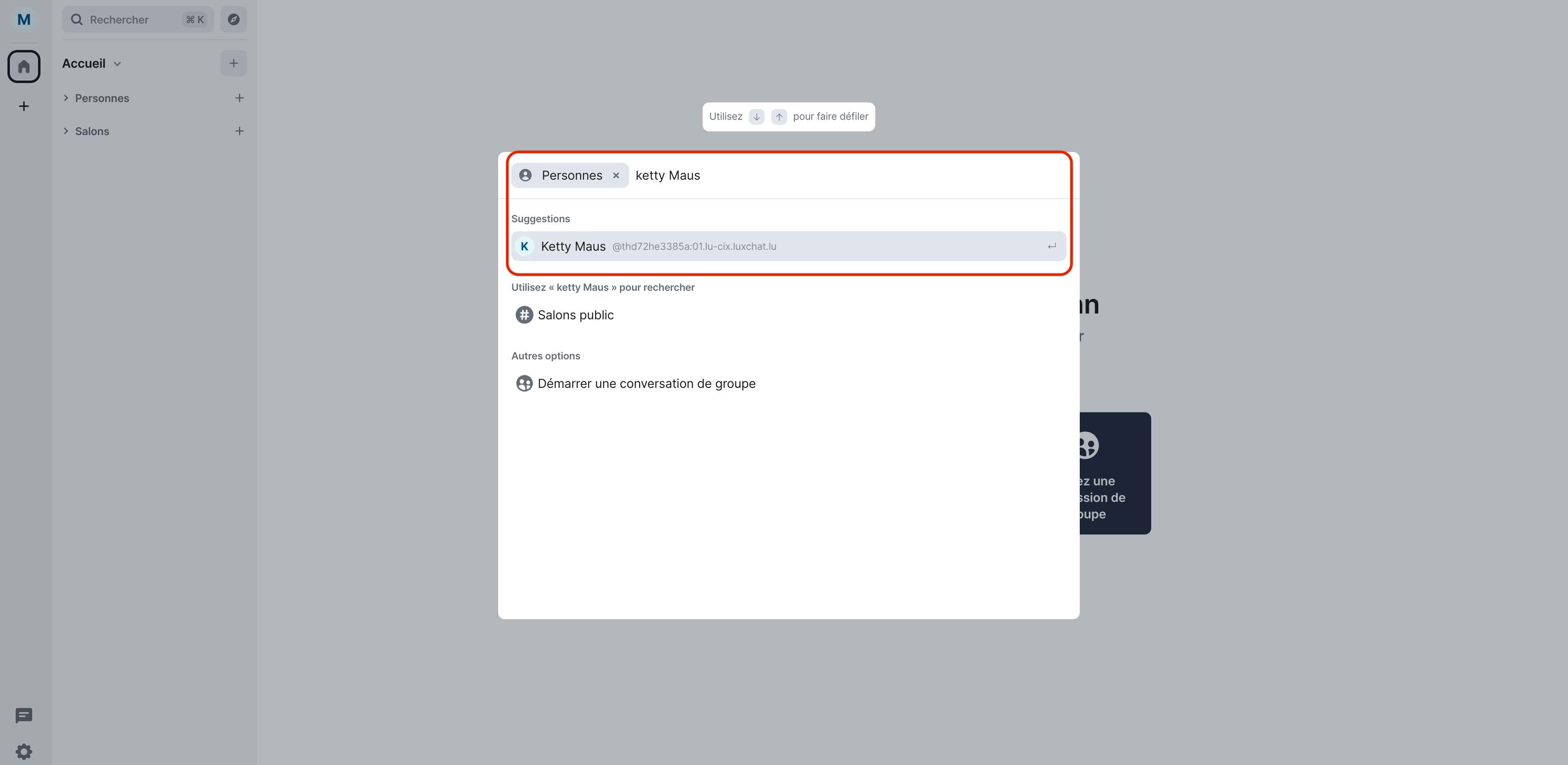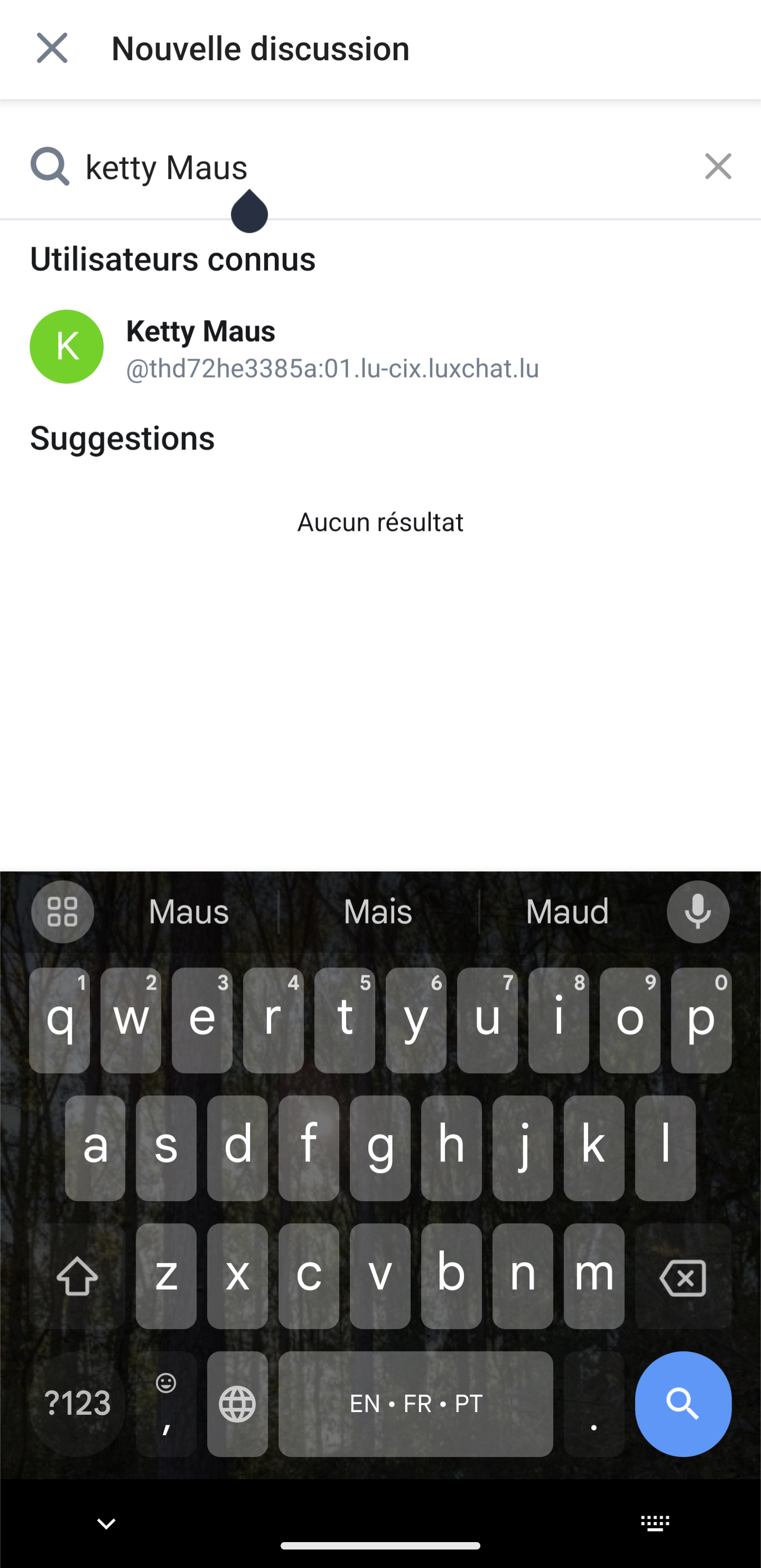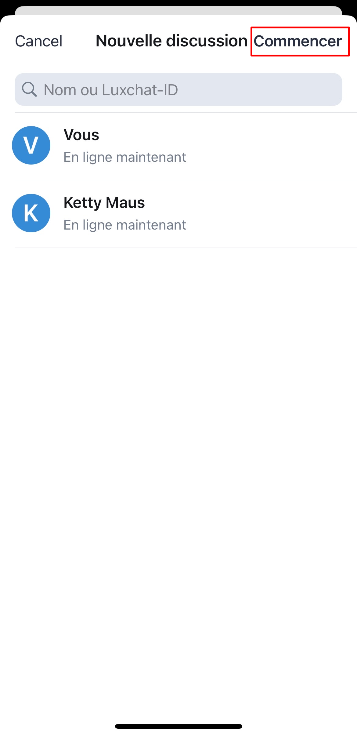 Recherchez lâutilisateur ou le Bot sur base de son nom (ou son Luxchat-ID)